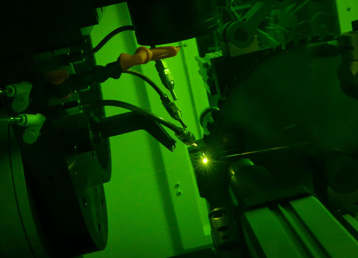 這是在位于廣東省佛山市的原點智能技術有限公司車間拍攝的數控機床激光雕刻作業現場(5月16日攝)。新華社記者 李任滋 攝
