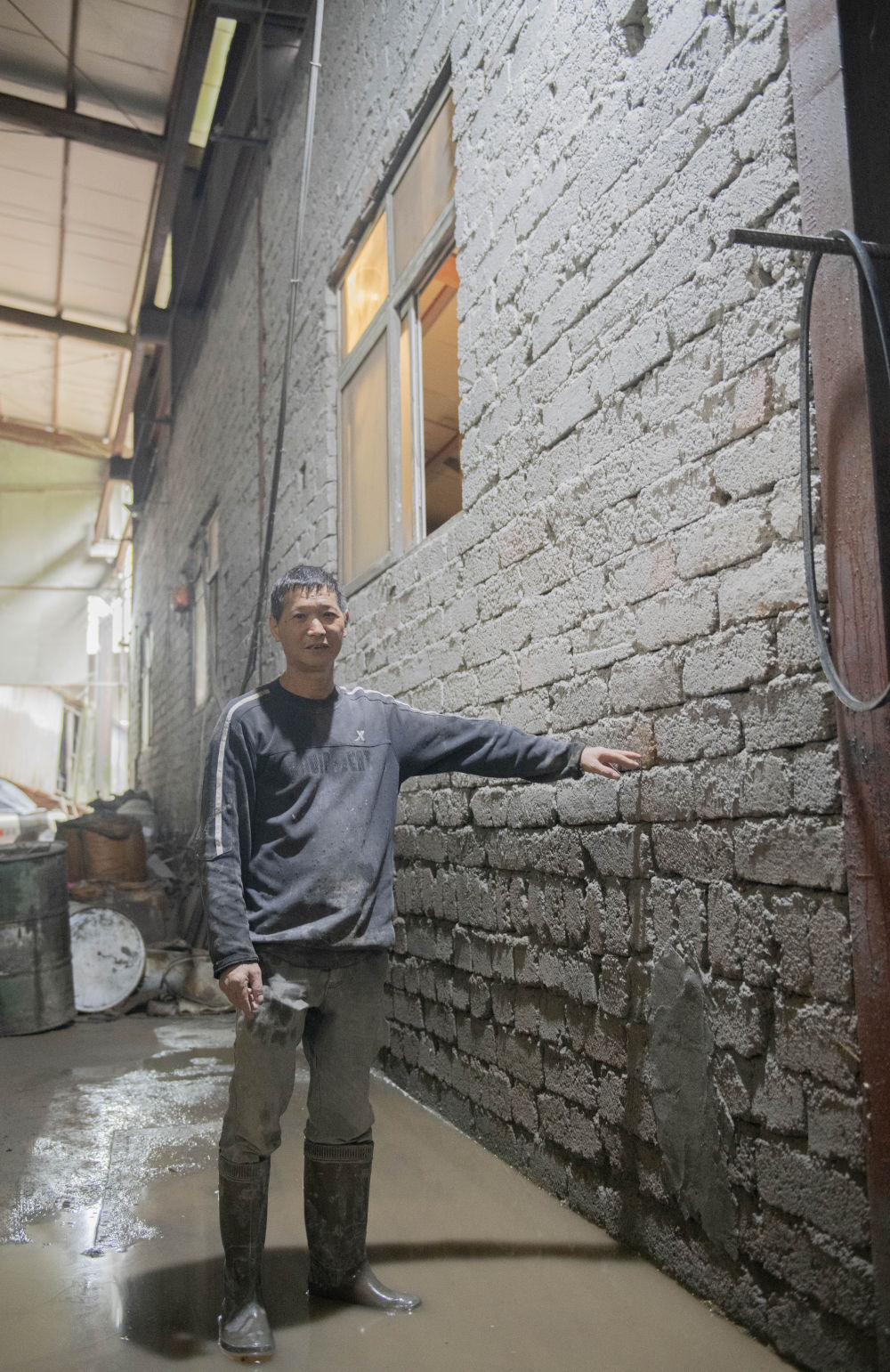 自力更生,生產自救。在東臨溪鎮臨溪村,金童水泥有限公司員工汪連枝正和同事們搶修被洪水浸泡后的設備,全力以赴為復工復產做準備。記者走訪看到,這里處處有被水浸泡的印記,廠區后方還有山體坍塌留下的泥土。