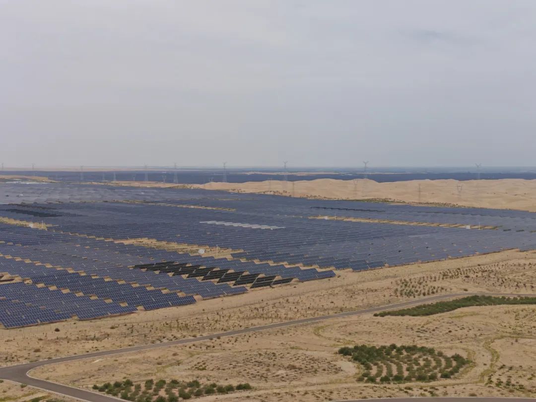 從高空俯瞰,位于鄂爾多斯的達(dá)拉特光伏發(fā)電應(yīng)用領(lǐng)跑基地,像一片深藍(lán)色的海面,覆蓋于庫布其沙漠上。每年,這個項目可以發(fā)“綠電”20億度,節(jié)約標(biāo)煤68萬噸,減排二氧化碳約165萬噸。