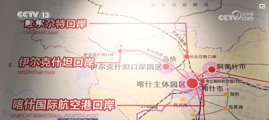 “五口”指的是喀什地區幾個重要口岸,如吐爾尕特、伊爾克什坦、喀什國際航空港、卡拉蘇、紅其拉甫等5個國家一類口岸。這些口岸連接著中國與哈薩克斯坦、塔吉克斯坦、吉爾吉斯斯坦、烏茲別克斯坦、巴基斯坦等8個周邊國家,從而形成了喀什獨特的對外開放格局。