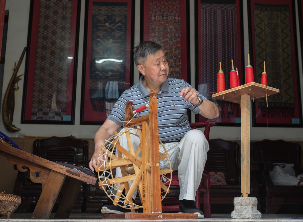 7月3日,唐洪祥檢查織錦博物館里收藏的清代木織機(jī)狀況。