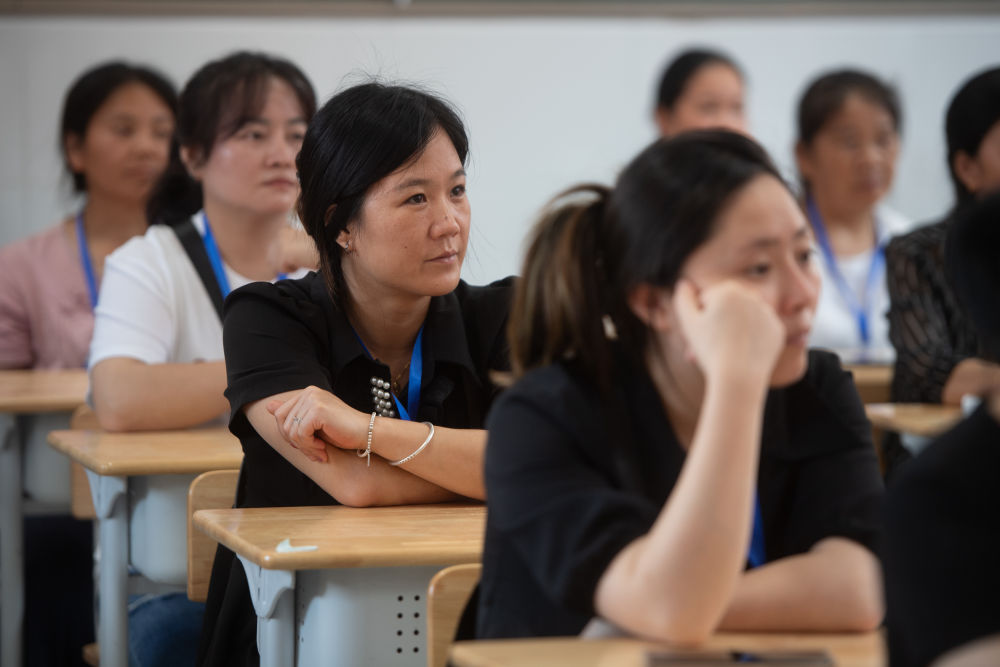 7月2日,湖北省來鳳縣高級(jí)中學(xué),學(xué)員們?cè)谖魈m卡普培訓(xùn)班聽講。唐洪祥的孫女唐鳴珂為學(xué)員們講解西蘭卡普的知識(shí)。