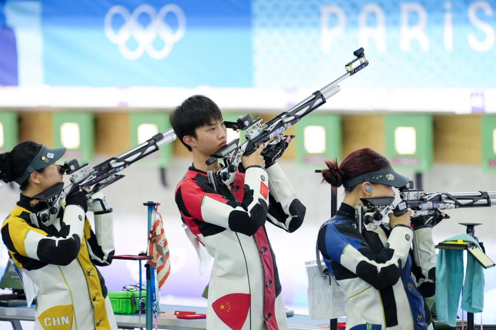 巴黎奧運會首金大概率將在射擊項目的10米氣步槍混合團體上產生。代表中國隊出戰的是黃雨婷/盛李豪和韓佳予/杜林澍兩對組合。四人中僅盛李豪有過奧運經驗,他在東京奧運會上一鳴驚人奪得男子10米氣步槍銀牌。三年過去,盛李豪更加成熟,他的混團搭檔黃雨婷年齡雖小,在賽場上卻異常沉穩,兩人已攜手奪得世錦賽、亞運會等多項大賽冠軍。