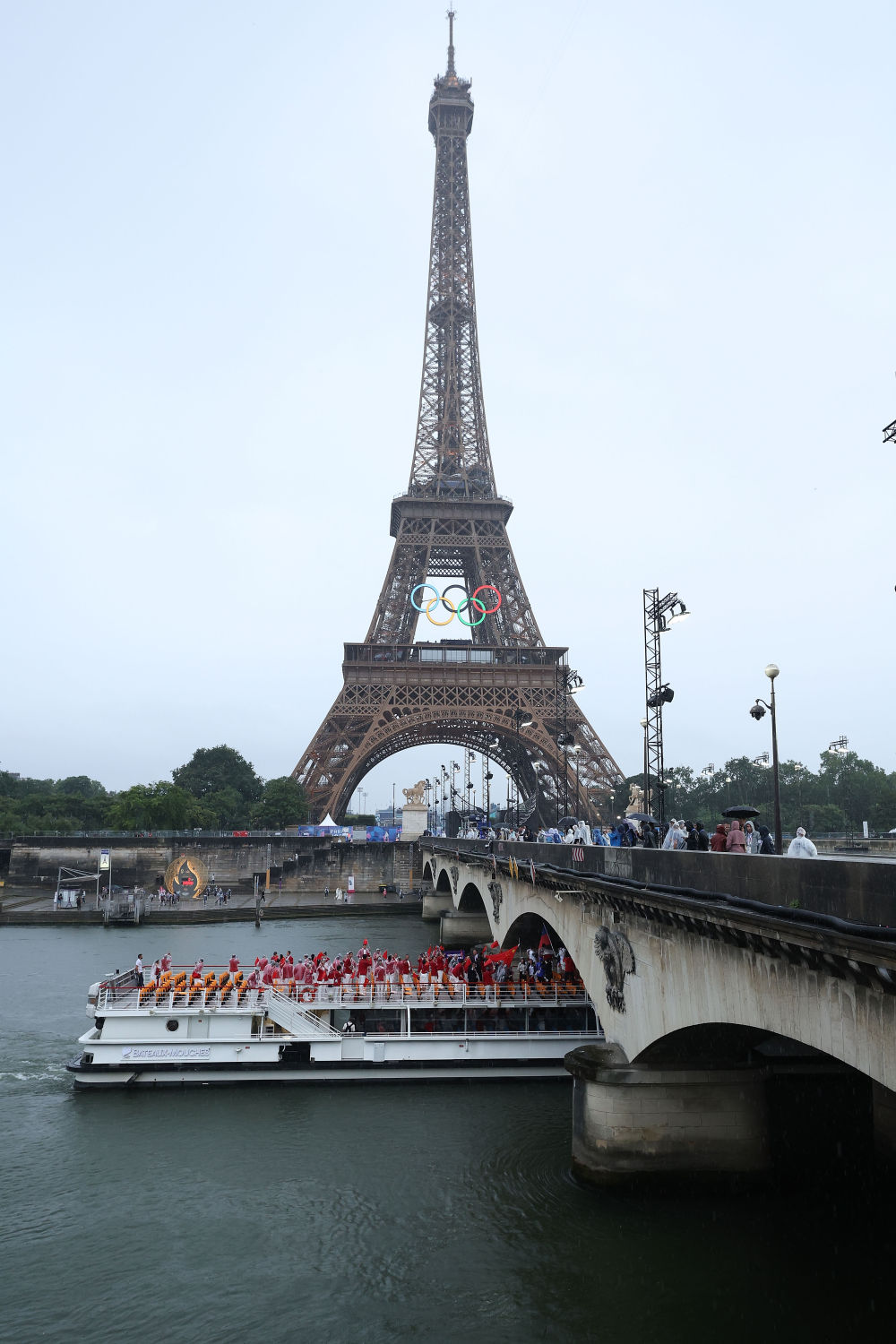 當(dāng)?shù)貢r(shí)間7月26日,第33屆夏季奧林匹克運(yùn)動(dòng)會(huì)開(kāi)幕式在法國(guó)巴黎舉行。乒乓球運(yùn)動(dòng)員馬龍、花樣游泳運(yùn)動(dòng)員馮雨高擎五星紅旗,中國(guó)體育代表團(tuán)運(yùn)動(dòng)員乘船在塞納河巡游。