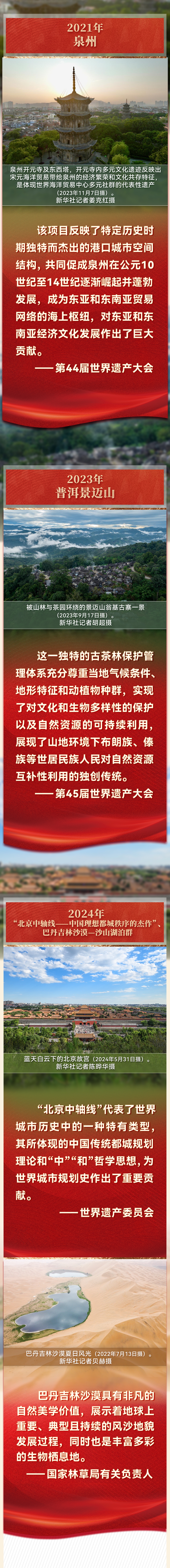 正在印度新德里召開的第46屆世界遺產大會27日通過決議,將“北京中軸線——中國理想都城秩序的杰作”列入《世界遺產名錄》。此前一天,巴丹吉林沙漠—沙山湖泊群同樣申遺成功。至此,中國的世界遺產總數達到59項。