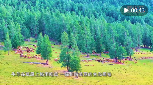 7月底,新疆阿勒泰夏牧場水草豐美,牛羊在草原上悠閑吃草,一幅和諧美麗的生態畫卷。