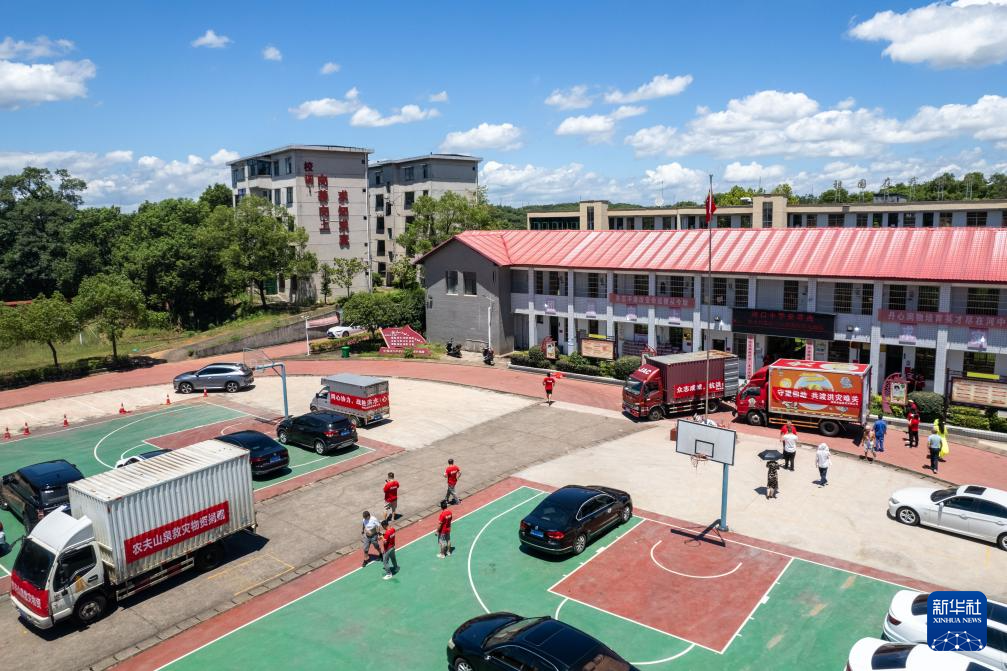 這是7月30日在湖南省湘潭縣拍攝的河口中學安置點(無人機照片)。新華社記者 陳思汗 攝