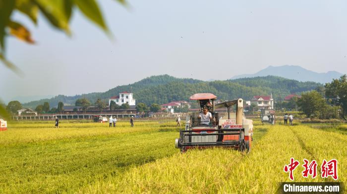 圖為三明水稻種子在收割中。陳震 攝