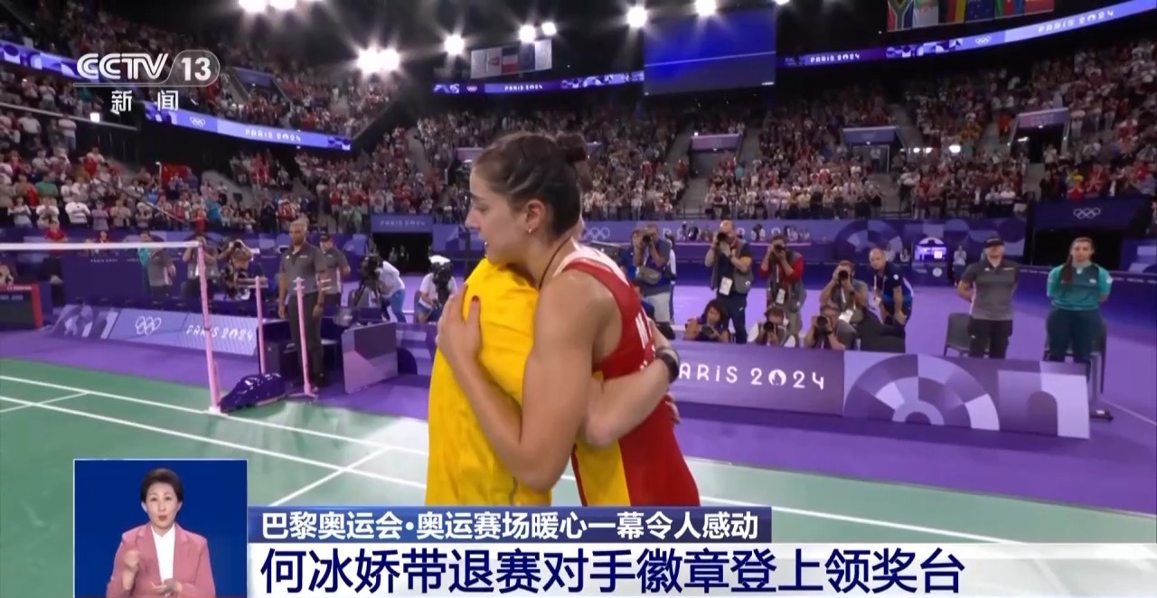 在羽毛球女單決賽中,中國選手何冰嬌0∶2不敵韓國的安洗瑩,收獲一枚銀牌。頒獎儀式上,何冰嬌在舉起獎牌的同時,拿出了一枚帶有西班牙國旗的徽章,向半決賽中因傷退賽的西班牙名將馬林送上慰問,祝愿她能夠早日康復,重回賽場。運動員之間不只有競爭,也有惺惺相惜、互相尊重,這也是奧林匹克精神的一種體現。