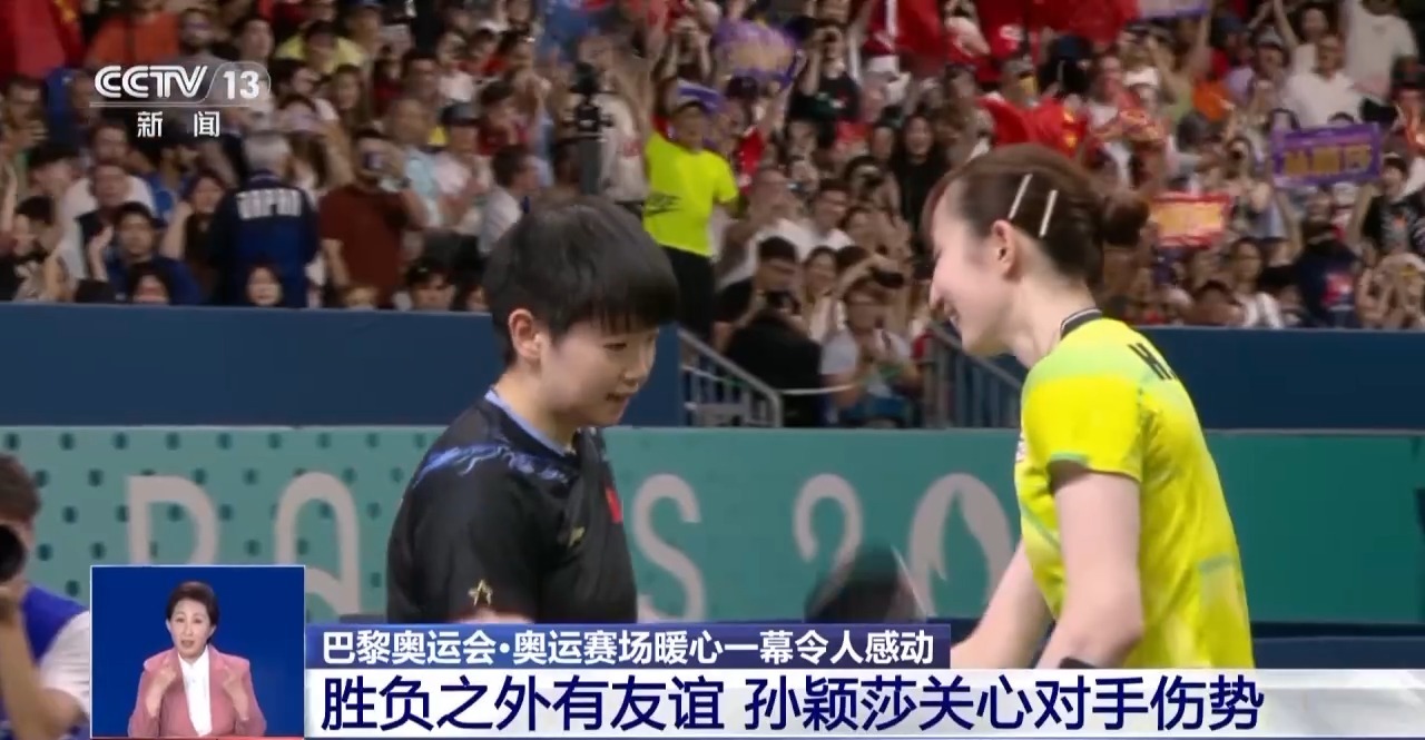 乒乓球女單半決賽,孫穎莎與日本選手早田希娜狹路相逢,技高一籌的莎莎以4∶0橫掃對手晉級。比賽結束之后,孫穎莎沒有慶祝就匆匆忙忙走到早田身邊,關切地詢問她手腕的傷勢。一個小小的暖心之舉,讓日本女孩大受感動。孫穎莎也用自己的行動詮釋了“友誼第一,比賽第二”的體育精神。