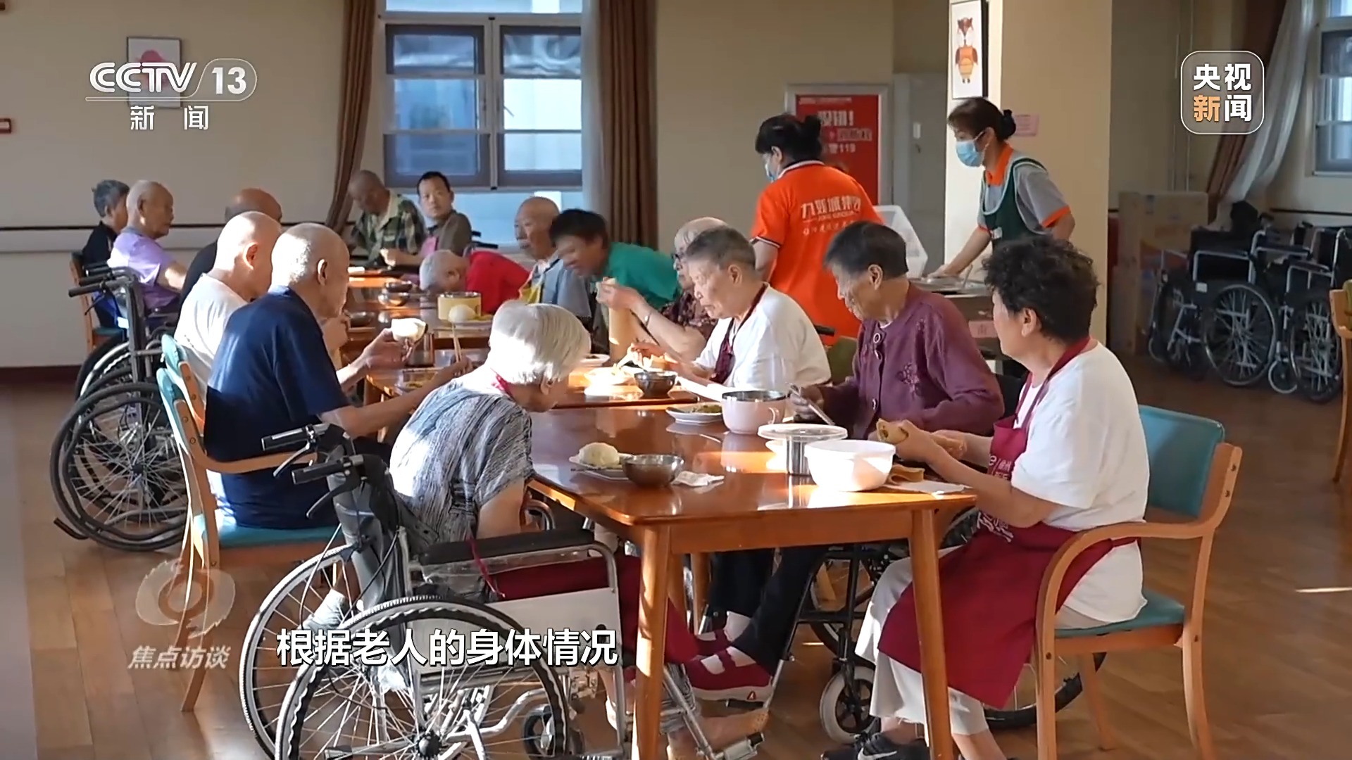 江蘇徐州新沂市鐘吾養老服務中心院長 范臣:我們根據老人的身體情況有糖尿病定制的餐食、老年慢性病的餐食,每周有膳食委員會采集老人最喜歡吃什么,從而制訂更符合老人口味的餐食。早餐我們準備的是兩個菜,保證每天一個雞蛋,還有面食,中餐是四個菜,兩葷兩素,晚餐是一葷一素,吃好的狀態下,也要吃得更健康、更有營養。