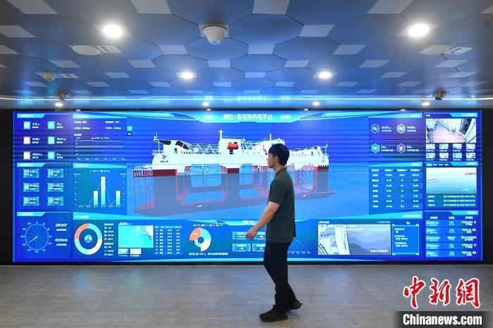 圖為工作人員正在查看“閩投1號”智慧漁業系統顯示屏。中新社記者 呂明 攝