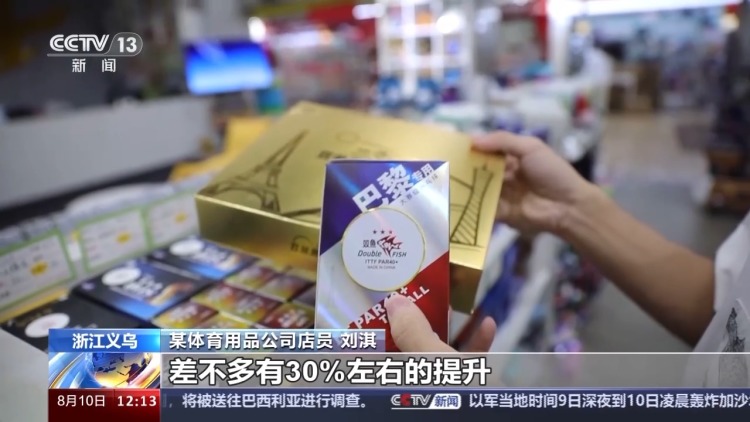 某體育用品公司店員 劉淇:巴黎奧運會的紀念珠目前銷量是最好的,現在差不多有30%左右的提升。