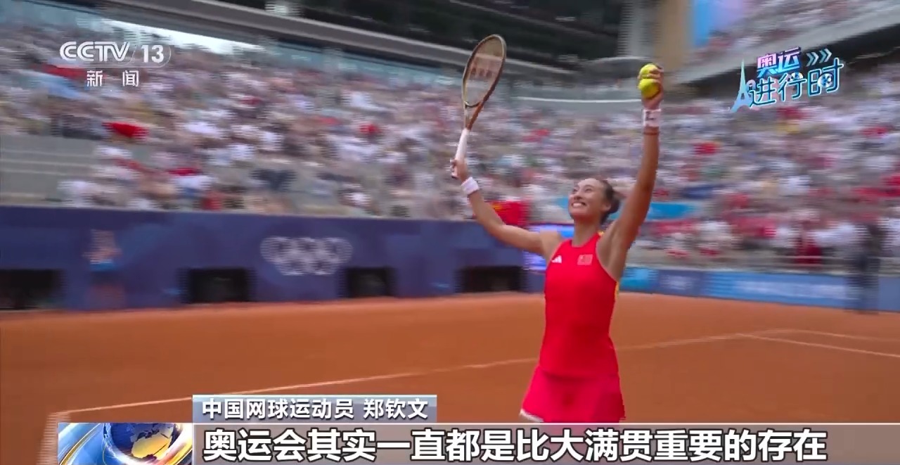 中國網球運動員 鄭欽文:對我還有我的家人來說,奧運會其實一直都是比大滿貫重要的存在。因為在我們心中,國家的榮譽永遠是要超過個人的榮譽。