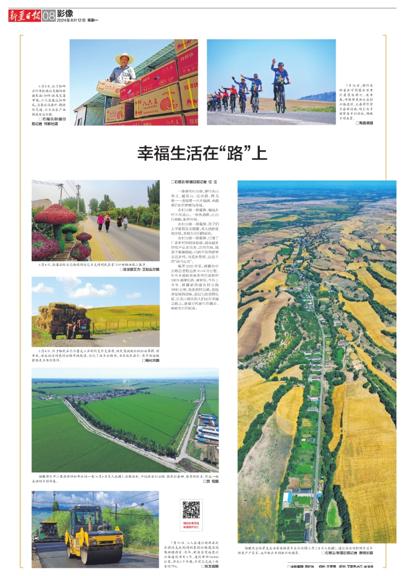 截至2023年底,新疆農村公路總里程達到15.58萬公里,所有鄉鎮和具備條件的建制村100%通硬化路、通客車。今年上半年,新疆新改建農村公路1940公里。條條農村公路,是經濟發展的動脈,是民生改善的見證,讓天山南北的人們走在幸福之路上,感受時代前行的腳步,體驗生活的和美。