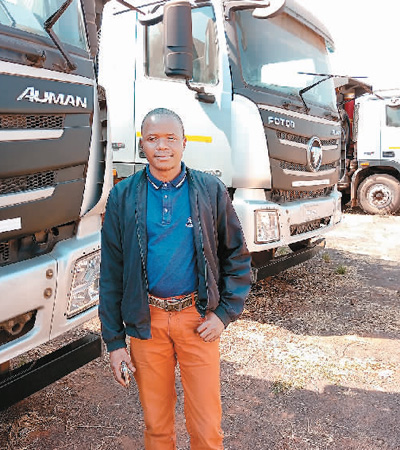 榮剛在北汽福田汽車前留影。圖片均由受訪者提供