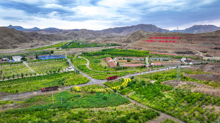 寧夏石嘴山市石炭井大磴溝生態修復示范區(2024年8月6日攝,無人機照片)。