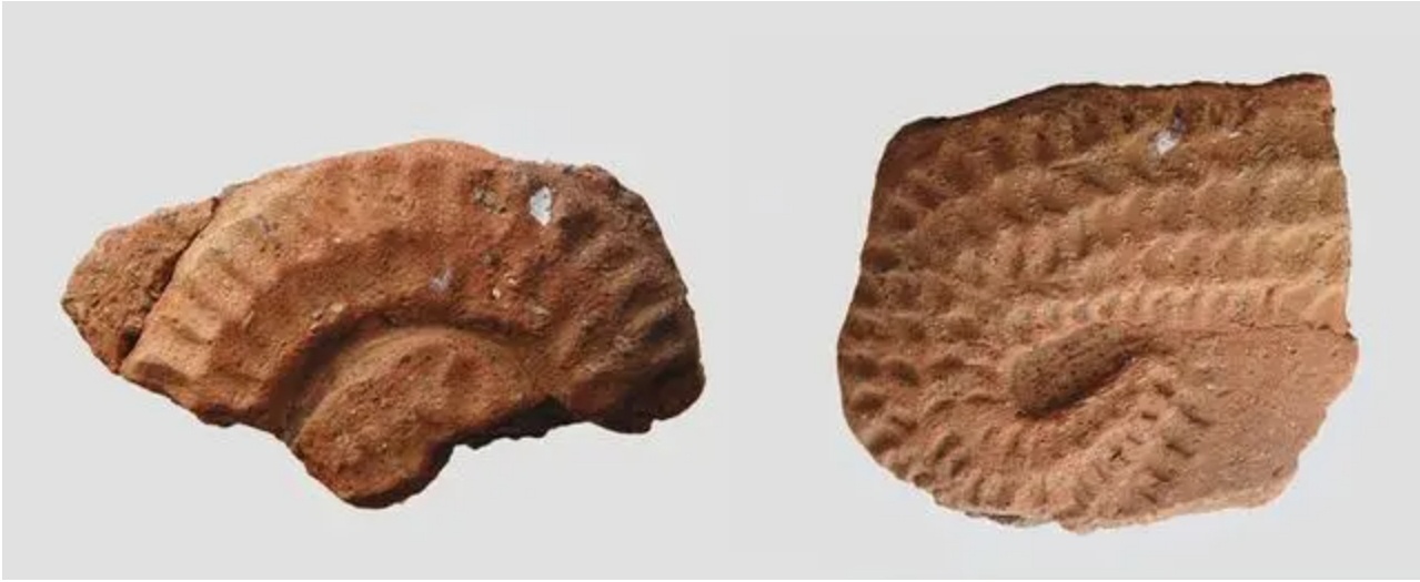 查海遺址出土的兩塊類龍紋陶片(央廣網發 查海遺址博物館供圖)