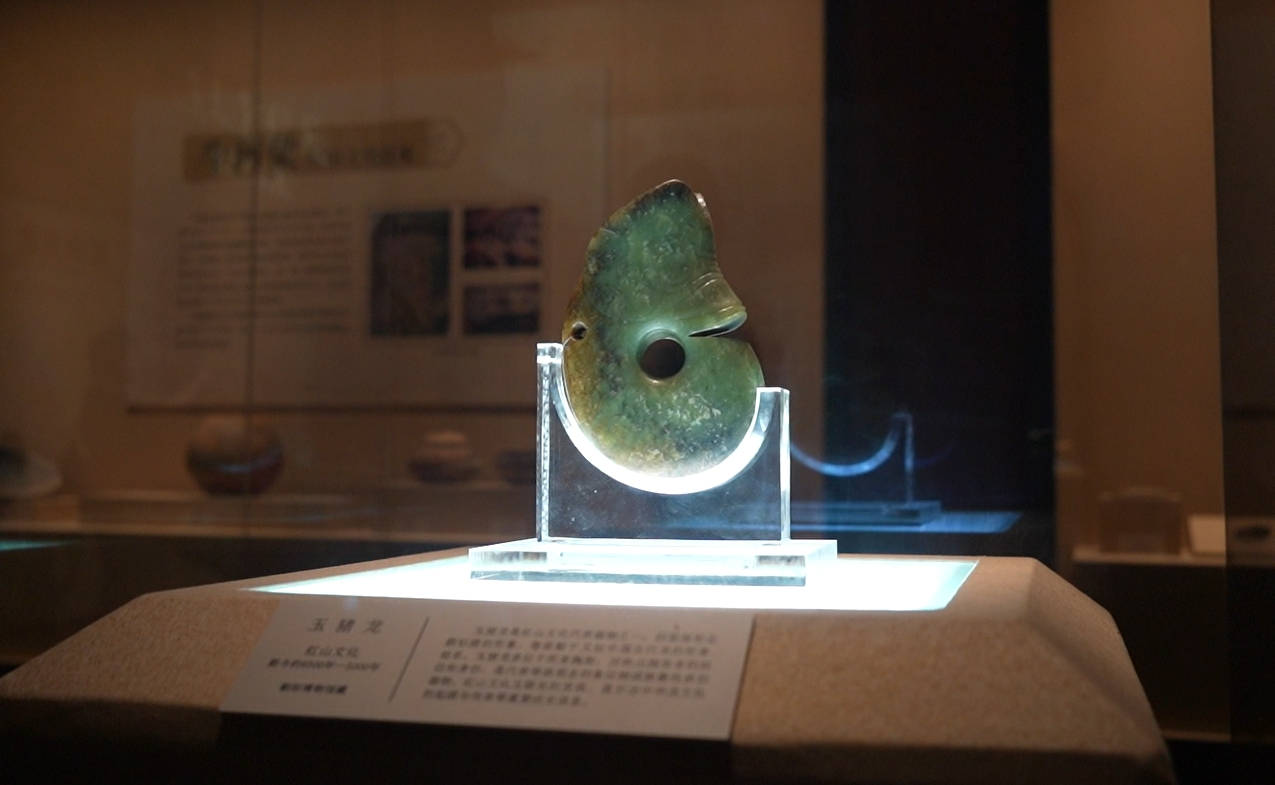 紅山文化玉豬龍,可能是先民族徽(央廣網記者 李子平 攝)