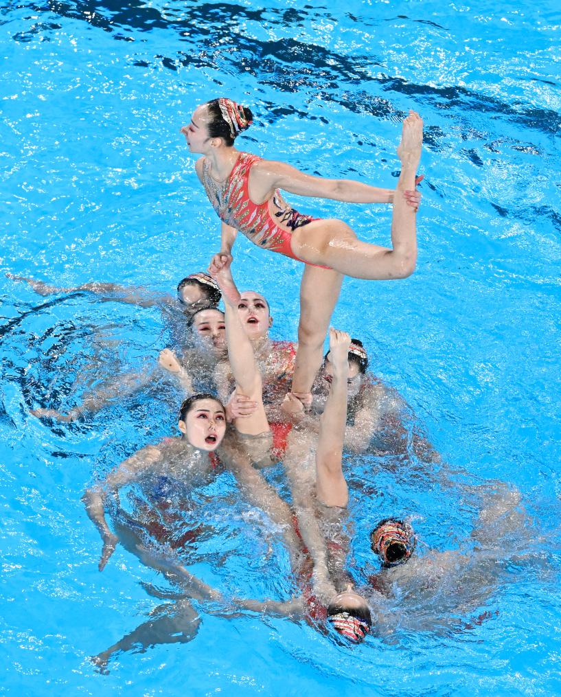 8月7日,中國隊在巴黎奧運(yùn)會花樣游泳集體技巧自選比賽中。新華社記者 夏一方 攝