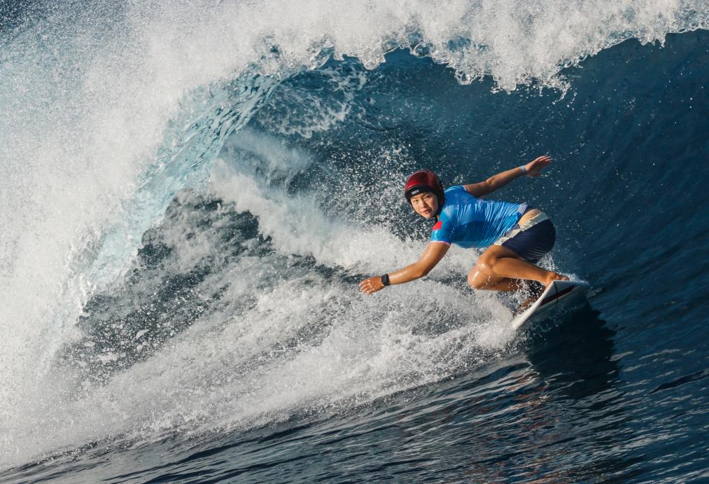 8月1日,中國選手楊思琪在巴黎奧運(yùn)會女子沖浪項目第三輪比賽中。新華社記者 馬平 攝