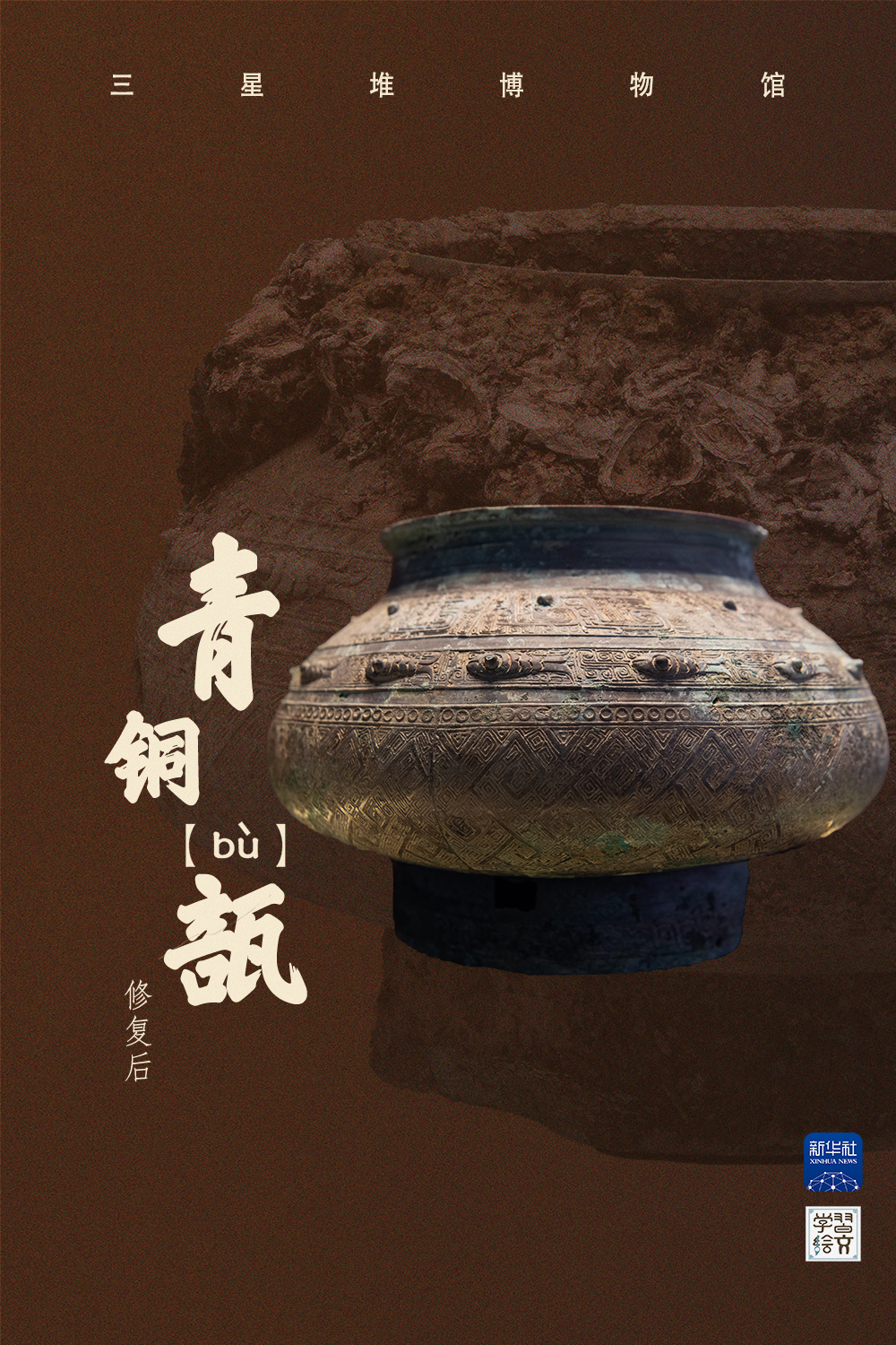 這是三星堆博物館文物保護(hù)與修復(fù)館拍攝的修復(fù)后的青銅扭頭跪坐人像。