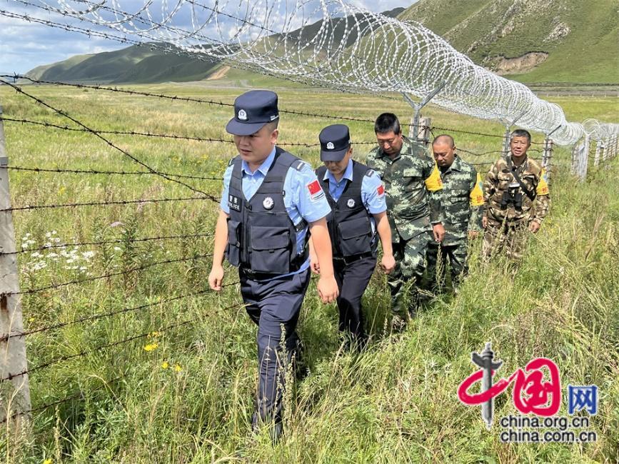 王玉發(fā)(最后一位)與邊境警察和其他護(hù)邊員一同巡邊。中國(guó)網(wǎng)記者 吳佳潼 攝