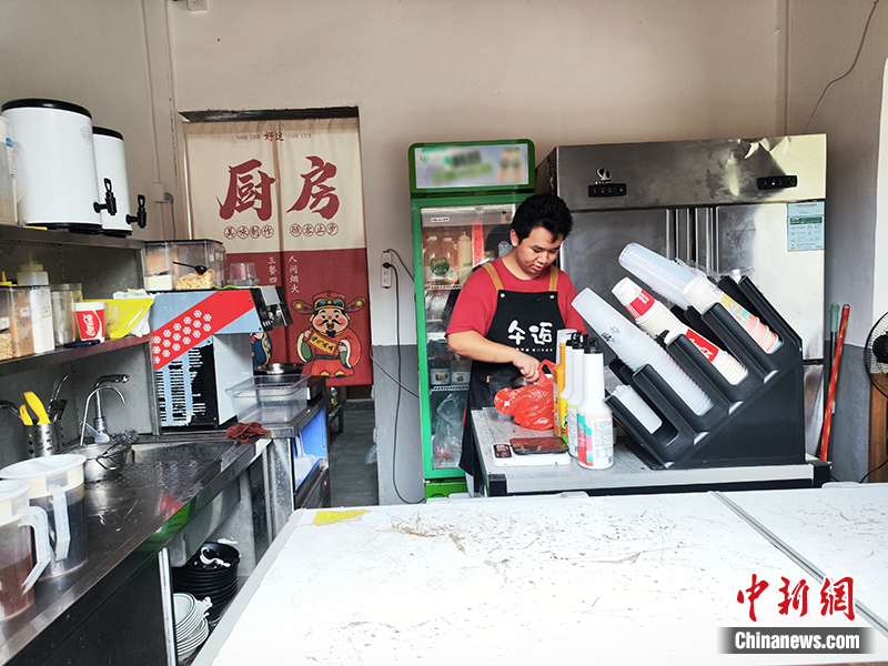 紅軍街上的奶茶店店主蘭嘉祥。劉越 攝