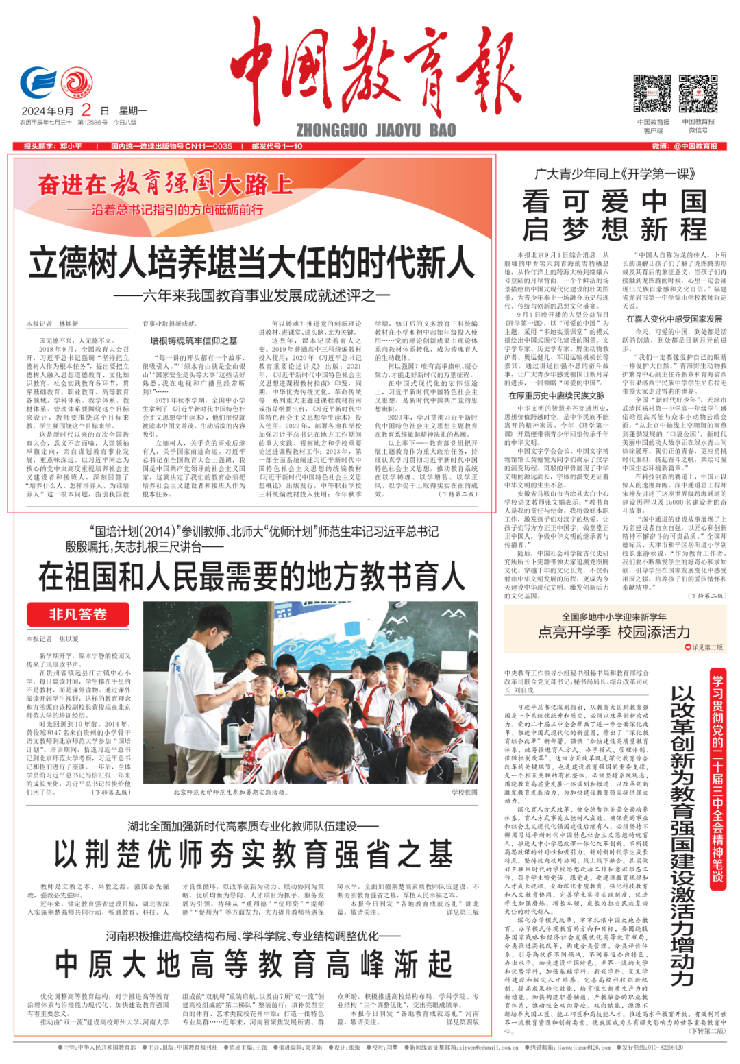 今天,“奮進(jìn)在教育強(qiáng)國(guó)大路上——沿著總書(shū)記指引的方向砥礪前行”專(zhuān)欄之“六年來(lái)我國(guó)教育事業(yè)發(fā)展成就述評(píng)”系列推出第一篇《立德樹(shù)人培養(yǎng)堪當(dāng)大任的時(shí)代新人》,一起來(lái)看——