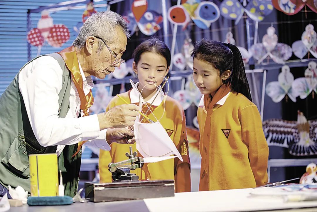 滇派風箏傳承人給學生講授風箏制作技藝。