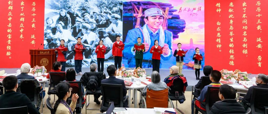 ▲活動現場,張思德生前所在部隊官兵與由中國人民大學、延安中學、人大附小學生組成的“延河講師團”,共同帶來原創朗誦《我們從延安走來》。