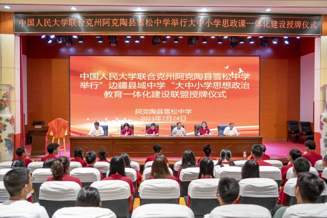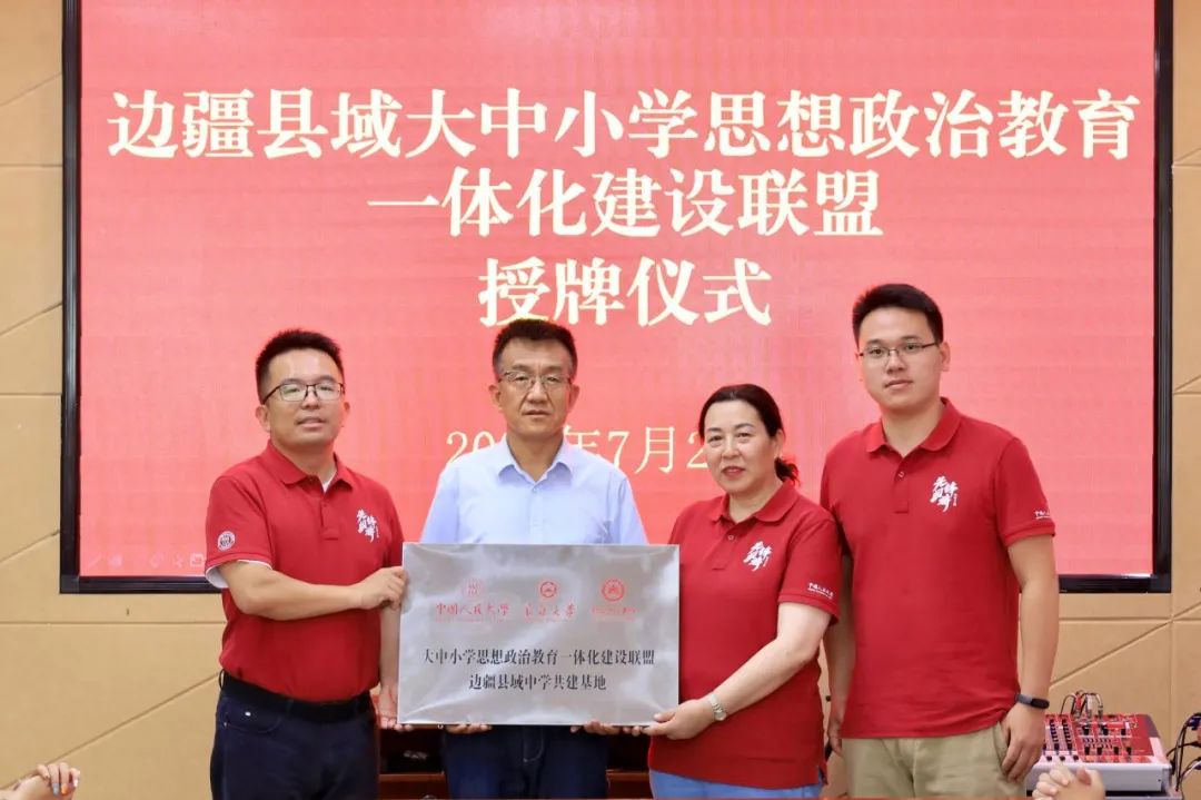 ▲中國人民大學向邊疆“大中小學思想政治教育一體化共建基地”授牌。