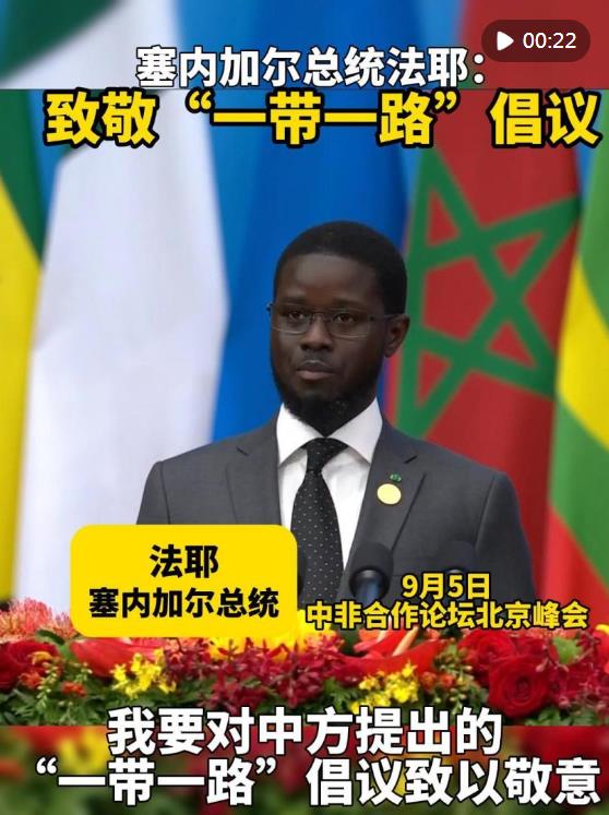 9月5日上午在中非合作論壇北京峰會開幕式上,塞內加爾總統法耶對中方提出的“一帶一路”倡議致以敬意。他說,這一倡議的實施對實現論壇在基礎設施領域的目標,特別是在港口、機場、公路、高速公路和鐵路建設方面,作出巨大貢獻。