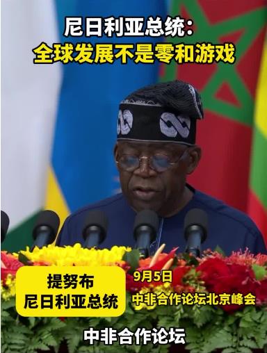 尼日利亞總統提努布5日在中非合作論壇北京峰會開幕式上說,中非合作論壇以及更廣泛的中非伙伴關系所取得的成功,表明一個重要真理:全球發展不是零和游戲。