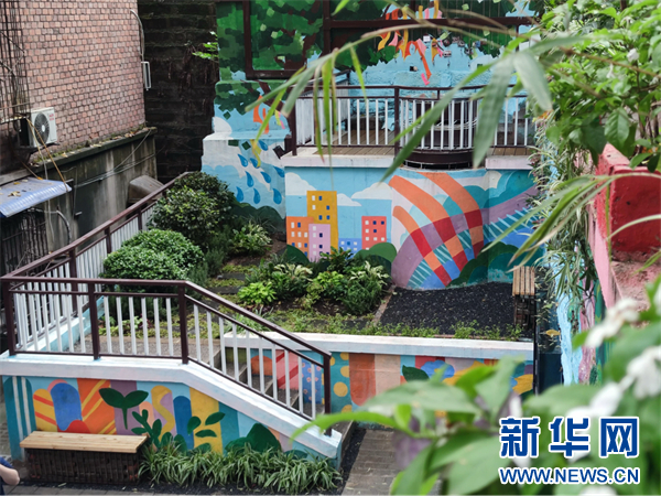 為了建好這個小花園,社區請來高校團隊一起設計,不僅種滿了花草,還有手繪裝飾,大家還給它取了一個文藝的名字——時光不棄花園。