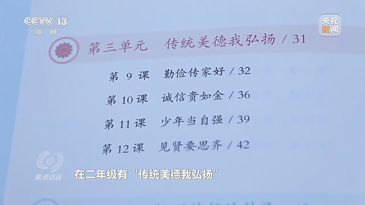 義務教育道德與法治統編教材編委會主任 孫蚌珠:為了讓學生循序漸進地了解中華優秀傳統文化,堅定文化自信,在二年級有“傳統美德我弘揚”,四年級有“博大精深的中華優秀傳統文化”,七年級有“傳承中華優秀傳統文化”,這樣層層遞進。