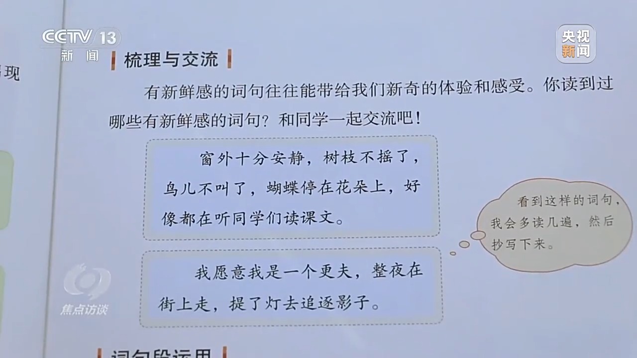 北京市海淀區翠微小學副主任、語文教師 王虹:拿到教材,我們心里特別踏實,我們發現這個教材進行了一些恰當的增、刪、調、并。一年級上學期識字量上原來是300個,現在280個,還有一些對學生理解起來有一些難度的課文,也進行了刪減或者調整。
