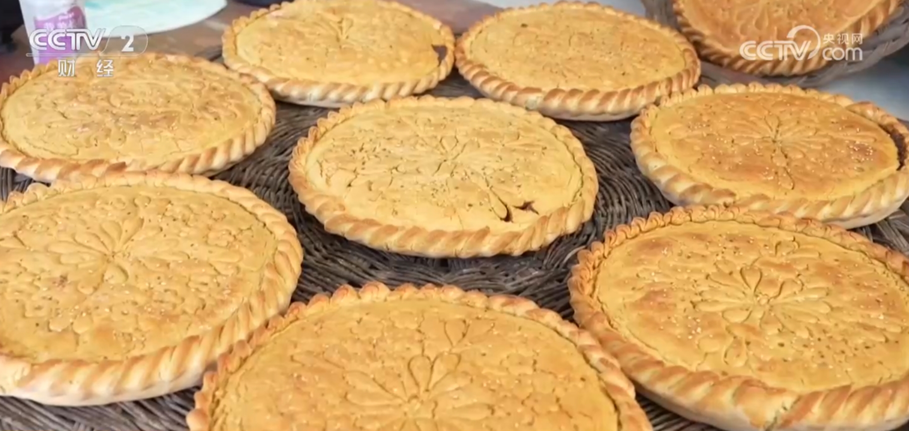 在甘肅蘭州,有一種名叫“糖油鍋盔”的土月餅也迎來銷售旺季,每天早晨,當地老字號門前都會排起長隊。