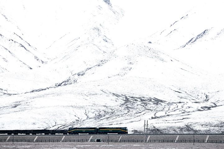 2024年5月27日,列車行駛在昆侖山下的青藏鐵路上。新華社記者 張龍 攝