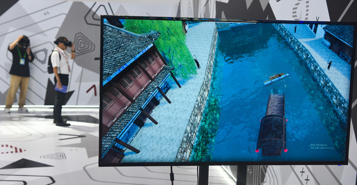 9月21日,觀眾在第十四屆中國國際數字出版博覽會上體驗大運河VR沉浸式研學空間。 新華社記者 楊冠宇 攝