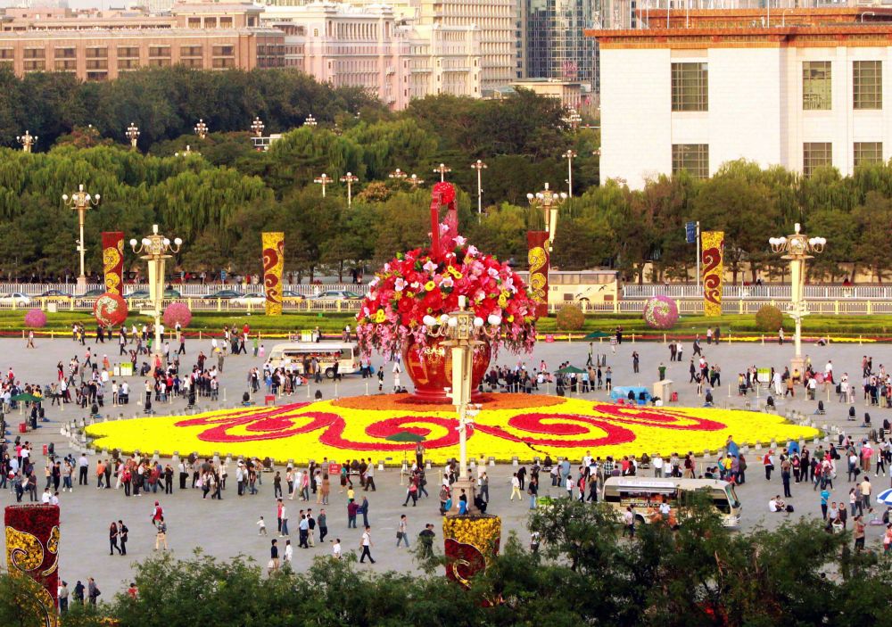自1984年起,每年國慶,均以花壇裝扮天安門廣場。每年的花壇都以當年發展的新成果、新亮點作為設計主線,透過一個個花籃,能一窺國家和人民的大事喜事。歲月流轉40載,曾經元素較為單一的平面花壇,如今已演變成色彩更豐富、造型更精雅、內涵更飽滿的立體花壇。這把歷史標尺,鐫刻著時代發展的印記。