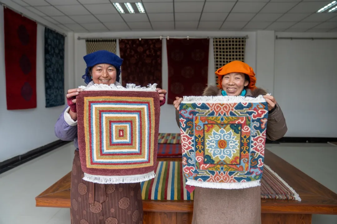 近年來,西藏山南市瓊結縣將傳統文化與鄉村振興相結合,通過援藏力量招商引資,成立公司生產純手工藏毯,同時還聘請藏毯手工藝人,為當地群眾教授編織技藝,在傳承傳統技藝的同時,拓寬農牧民增收渠道。 新華社記者 旦增尼瑪曲珠 攝