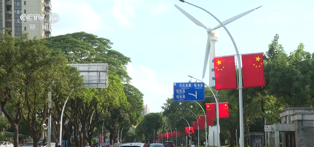在廣東深圳,公園、廣場、街道上,處處可以看到五星紅旗迎風飄揚。紅旗與藍天、綠樹、高樓交相輝映,為城市增添了濃濃的節日氛圍。