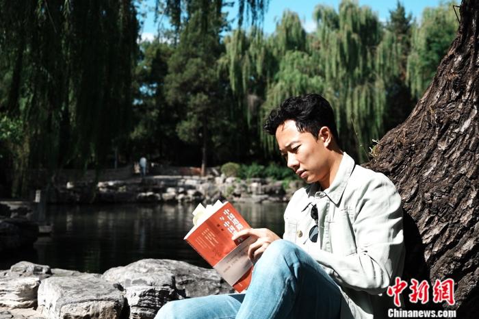李浩銘在清華校園內讀書。蔡鎮涵 攝