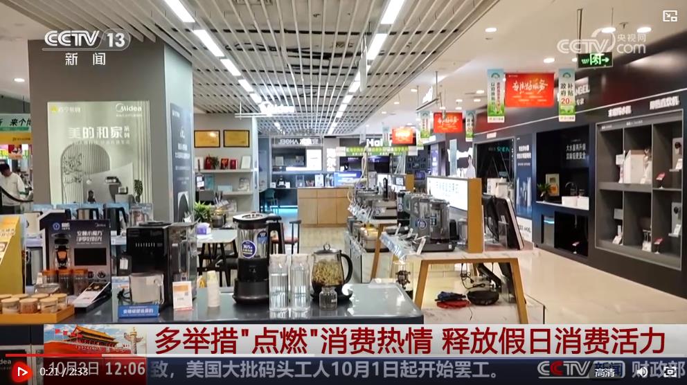 央視網消息:國慶假期開啟,消費市場也迎來了旺季。各地紛紛加大力度滿足節日市場供給、保障好節日需求。同時,創新供給方式、推出新的消費場景、加大文旅產品供應,加力推進消費品以舊換新,進一步激活市場。