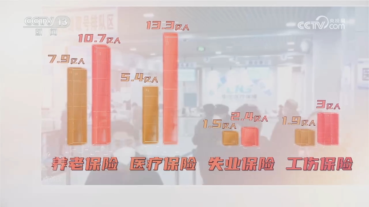 黨的十八大以來,我國將社會保障體系建設擺在更加突出的位置,建成了世界上規模最大的社會保障網。從2012年底到2023年底,我國養老、醫療、失業、工傷保險參保人數都大幅增加。