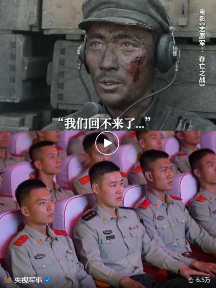 近日,武警北京總隊機動某支隊官兵觀看了電影《志愿軍:存亡之戰》。(該支隊特戰一中隊前身原隸屬電影中“英雄鐵軍”63軍188師,是這部電影中主要描繪的連隊原型。)在電影里,63軍188師營指導員李想說完“一營倒下了,我們回不來了,你們繼續前進”,眼含熱淚的官兵響亮回答:“我們繼續前進!我們繼續前進!我們繼續前進!”這一幕感動了眾多網友。
