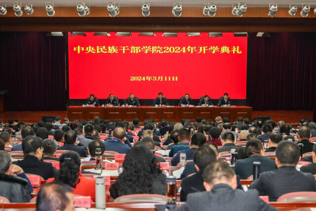 ▲3月11日,中央民族干部學(xué)院2024年開學(xué)典禮暨全國民委系統(tǒng)鑄牢中華民族共同體意識輪訓(xùn)班(第一期)舉行開班式。來源:中央民族干部學(xué)院