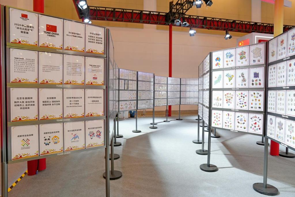 與此同時,中國國家隊“冰與火的澎湃”徽章展正在博覽會上展出,102個主題、10428枚徽章驚艷亮相。這是首次展出中國國家隊全系列徽章,此外還有哈爾濱亞冬會、成都世界運動會、北京冬奧會、巴黎奧運會等國內外大型體育賽事徽章及多個題材的主題徽章。主辦方特設徽章交換專區,眾多徽章收藏愛好者在此熱烈交流。