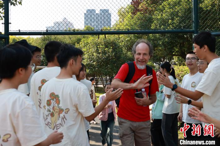 10月11日,辛辛那提—柳州姐妹城市委員會主席約瑟夫與柳州學生互動。 林馨 攝